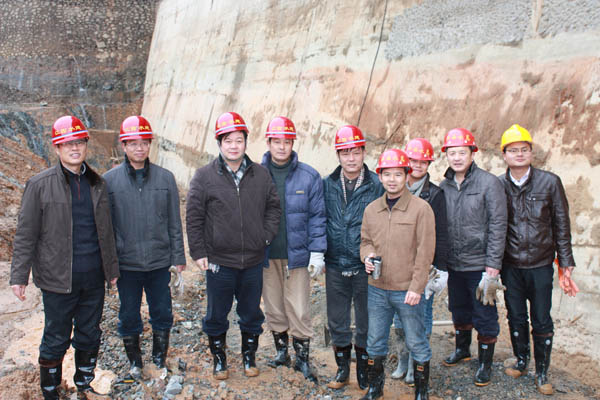 董事长、总经理王元旦一行首先来到基坑浇筑、混凝土搅拌站等施工现场进行察看,与施工人员一一握手,并听取了春节期间带领员工奋战在施工一线的公司副总经理聂玉和的生产情况汇报。董事长、总经理王元旦详细询问了搅拌站的生产能力能否满足施工要求,工程的进展情况及后期施工中的各项措施,对项目部全体员工放弃节假日抢工期、保质量、抓进度的奉献精神给充分肯定和高度评价,他勉励大家保证质量安全的前提下,抓紧时间完成大坝防渗面板的施工、再苦再累也要咬紧牙关挺过去,并要求施工项目部合理安排好大家春节期间的工作和生活。