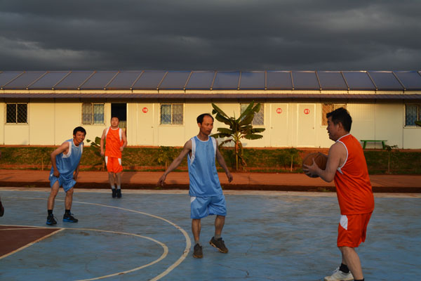 下午5点,在结束了一天的考察及座谈后,董事长王元旦一行与双河房地产项目员工举行了一场篮球友谊赛。篮球赛是总公司企业文化的重要组成部分,通过在海外员工中积极开展这项运动,公司海外员工的凝聚力得到了增进,企业的发展动力也获得了提升。