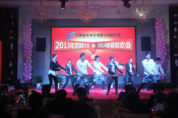 联欢会文艺表演在舞蹈《中国梦,我的梦》中拉开帷幕,歌曲联唱、朗诵、小品、情景剧、激情热舞等文艺节目先后上演,精彩的表演引来了全场掌声雷动,充满了欢声笑语。新的一年开启新的希望,新的征程承载新的梦想,《水利人的一天》、《赞美水利、走向世界》等篇章抒发出江西水建儿女迎着水利春天的脚步,肩并着肩,手牵着手,一起为公司和个人的美好明天努力奋斗的壮志与豪迈!